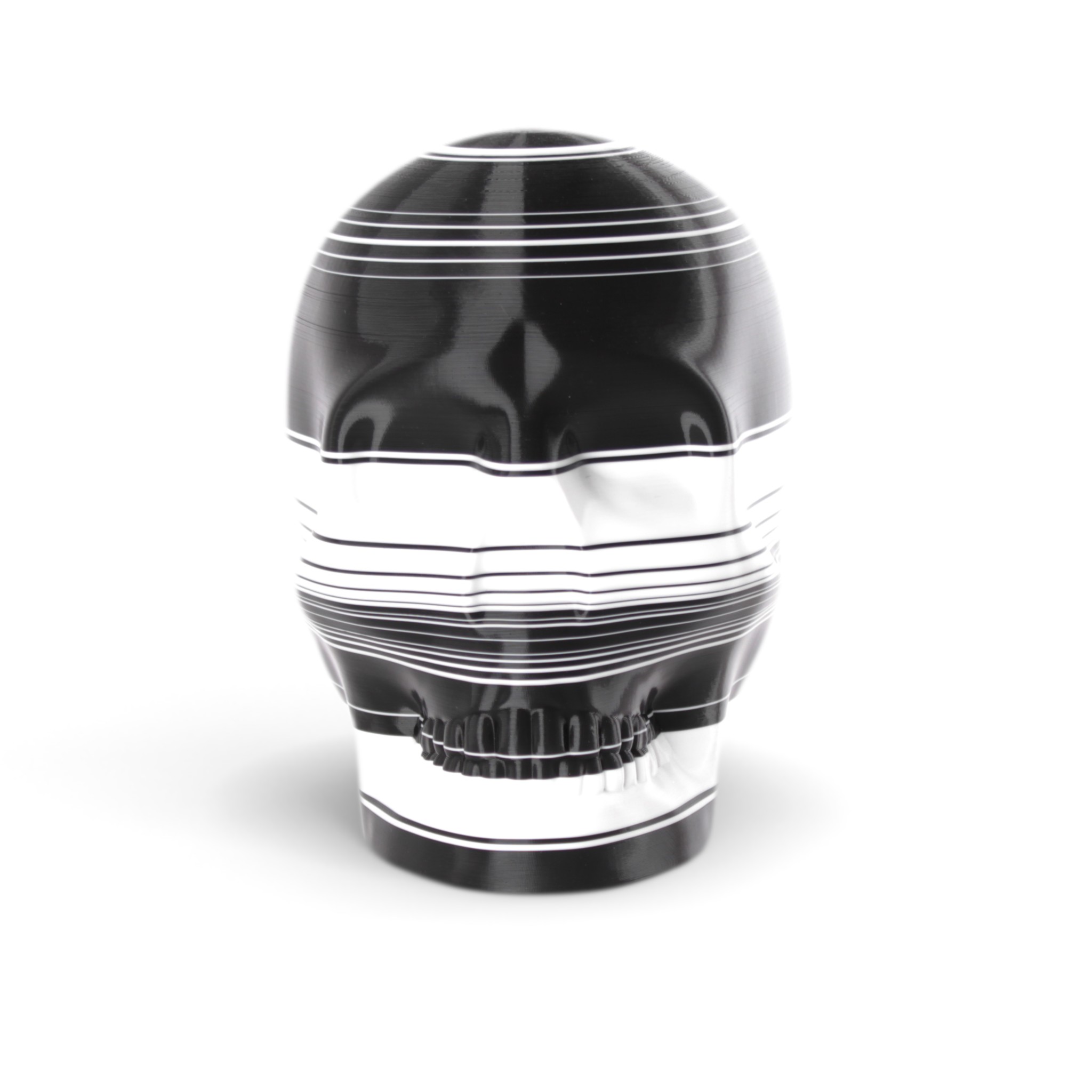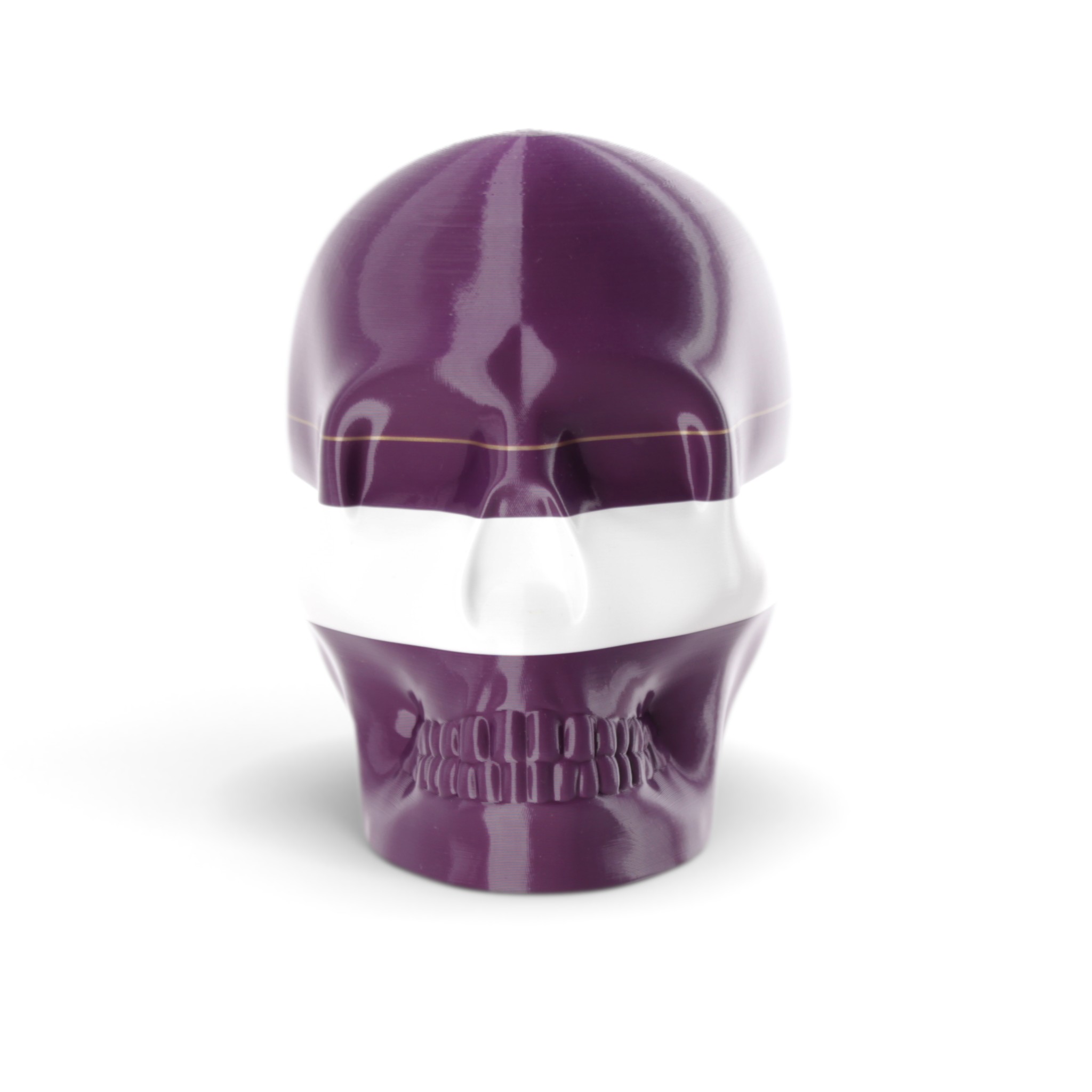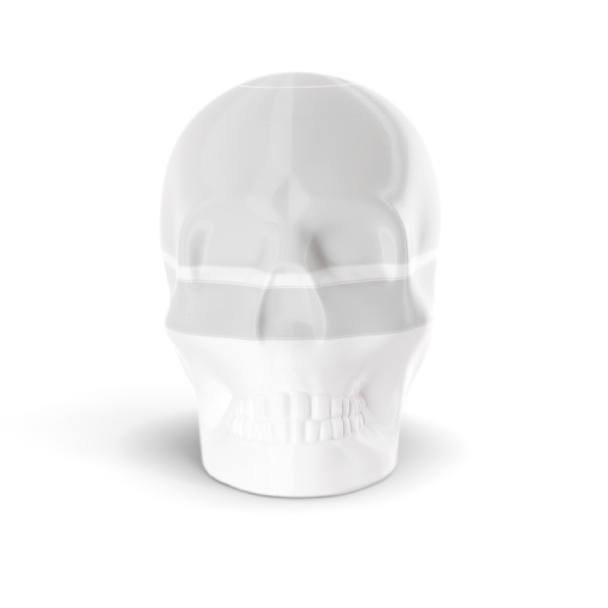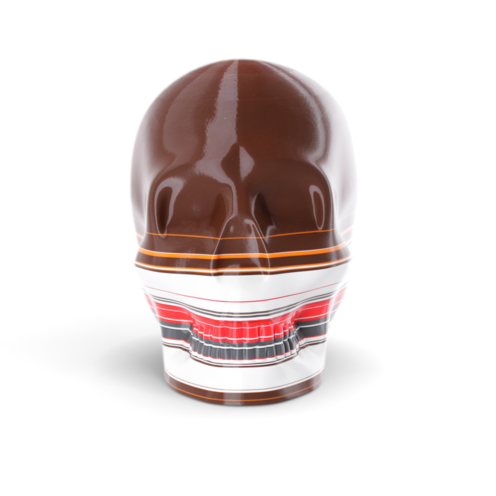 The shape in this series is a constant. Like the cups manufactured in the industrial age... they are all the same. Except with 3D printing we can customise and make every object unique... the skulls all have one of a kind colour patterns manually inserted in the 3D printing process.